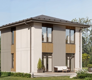 Комфортный дом с кухней-гостиной и тремя спальнями. Один из самых востребованных проектов по площади. Сочетает в себе удобство квартиры и все преимущества загородного жилья.